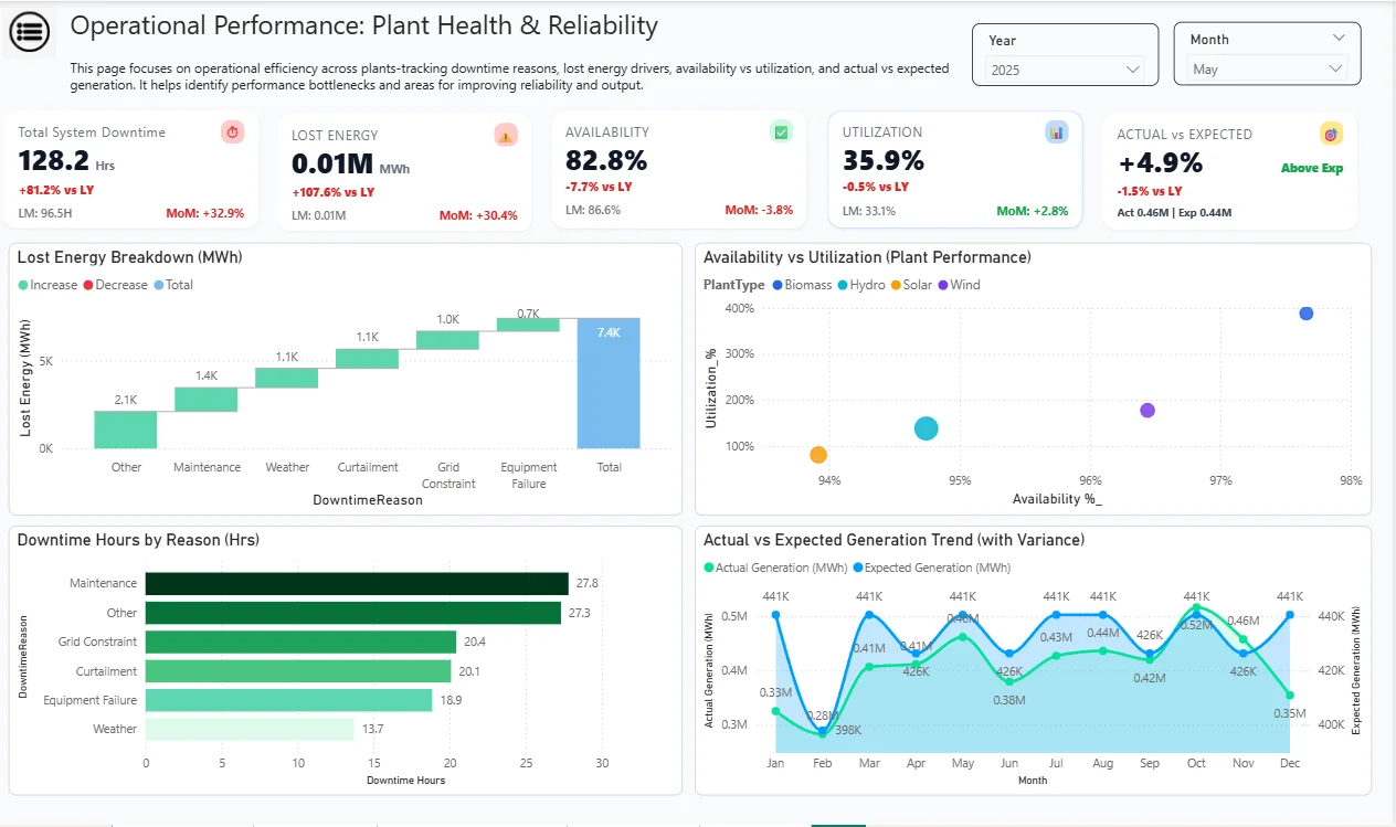 After the dashboard was rolled out, stakeholders could instantly see how generation, consumption, and demand gaps were moving across regions and time periods. Operations teams got a clearer view of downtime drivers and lost energy, helping them prioritize corrective actions. Finance teams could compare cost vs output to identify high-cost / low-return plants and focus efficiency efforts. Overall, the business moved from spreadsheet-based reporting to a quicker, more proactive review cycle.